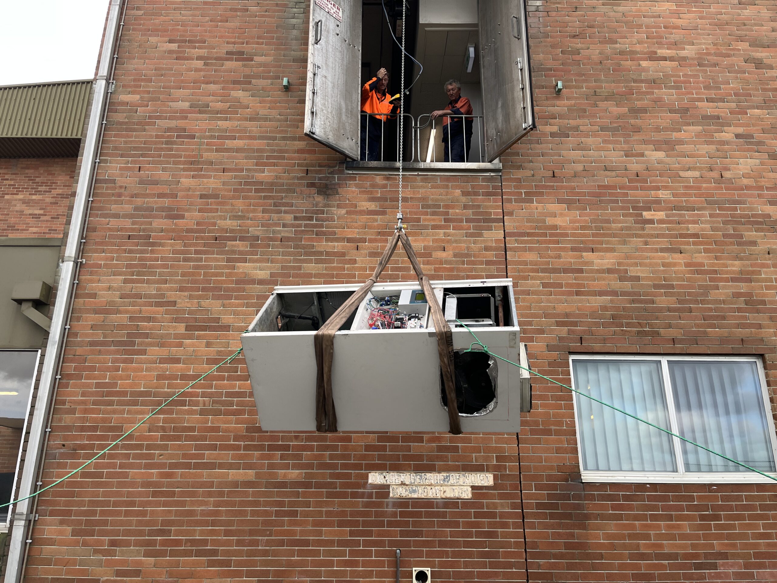 The scope included the safe disconnection, removal, and disposal of the existing unit, along with associated pipework, electrical and control cabling, ducting, and peripherals. In its place, the new CRAC unit was installed using the building’s existing hoisting system, with lifting operations performed by a licensed rigger via the first-floor hoist door.