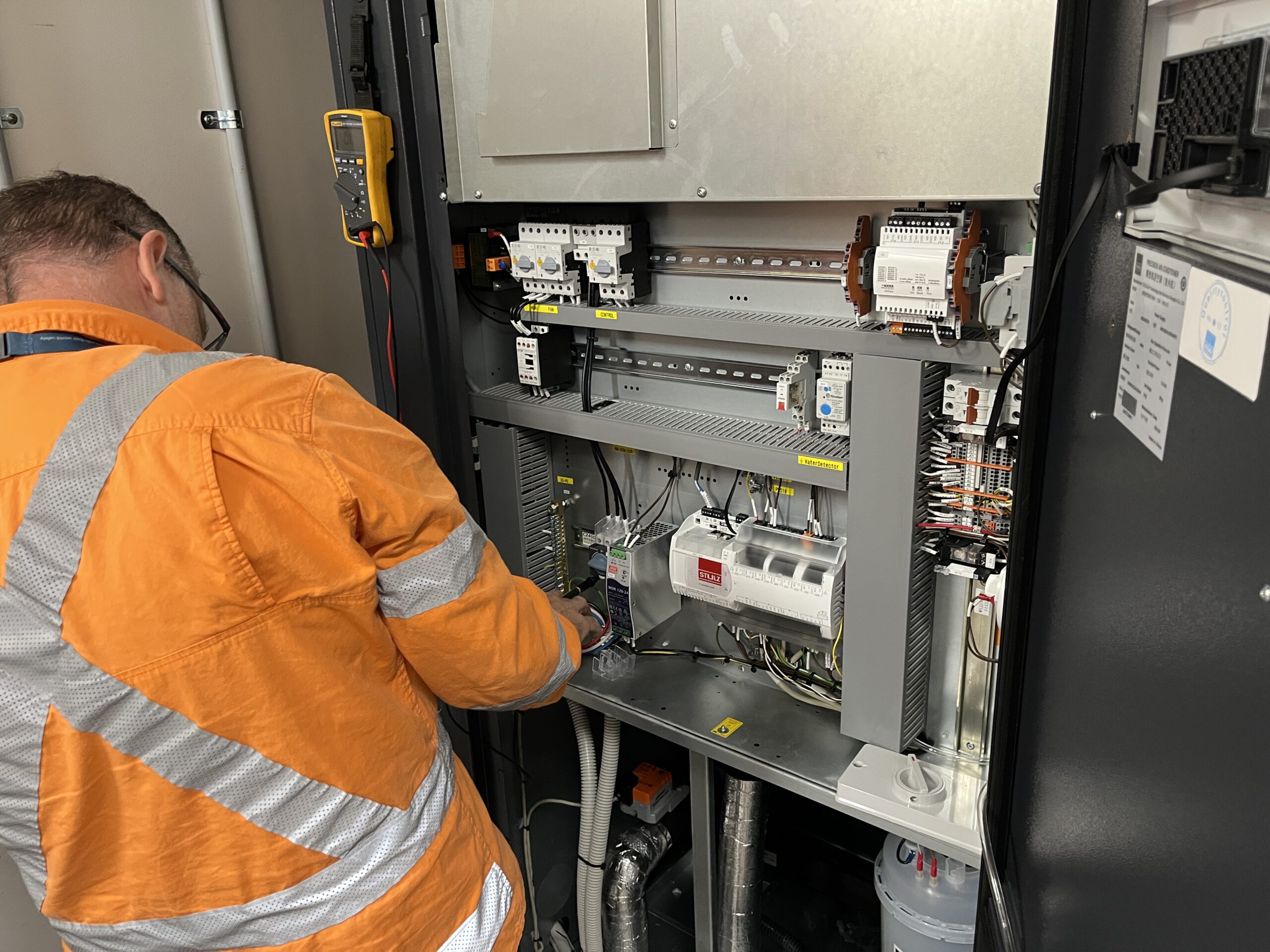 Installation works involved the reconnection of the existing AC-4 submains and control cables, and the supply and fitting of a new maintenance isolator. To ensure optimal system performance and longevity, new copper piping with 25mm wall insulation was installed, and a ball valve was added following pipe freezing procedures.