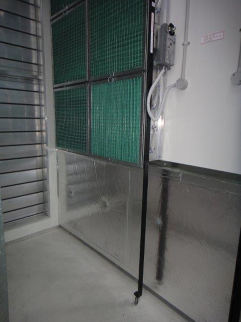 Along the eastern façade a new 4 m tall cool room “sandwich” panel outside air / return, air mixing plenum was created from floor to ceiling. The use of the cool room panel offered a number of benefits in that it is durable, is lightweight, provides a very neat neutral white finished product and most importantly provided very minimal mess and debris during within the operational equipment room. With most panels being cut to size in the factory and delivered to site ready to install, only minor site cutting was required for final positioning of grilles. The styrene beads were much easier to control and clean up rather than conventional products such as gyprock. Whilst this product provided thermal insulation the internal walls of the plenum were lined with acoustic insulation to reduce the noise generated by the operating plant. In addition to the acoustic benefits this insulation also provides cover to “hide” the myriad of conduits and cables required to operate the plant which were all run within the plenum where possible.